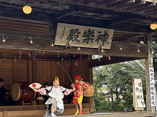 平安時代から続く神楽、日本の伝統文化を継承するお囃子、浪曲の公演など、主催者である大利根にぎわい座、協賛団体として町商工会、各種団体の皆様、町民が一同に会し、まさに町民手づくりのイベントが開催されており、諏訪大神の境内は子ども達の歓声とともに、大いに賑わっております。